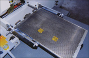 ![]() | Dispositivo prático para colocação de folhas cruzadas. Placa de aquecimento em favo de mel de material especial ajuda a localizar a placa de bronzeamento. |