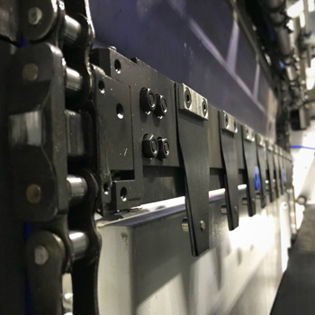 Roda dentada aprimorada para correntes de garras, garantindo alta velocidade de execução.