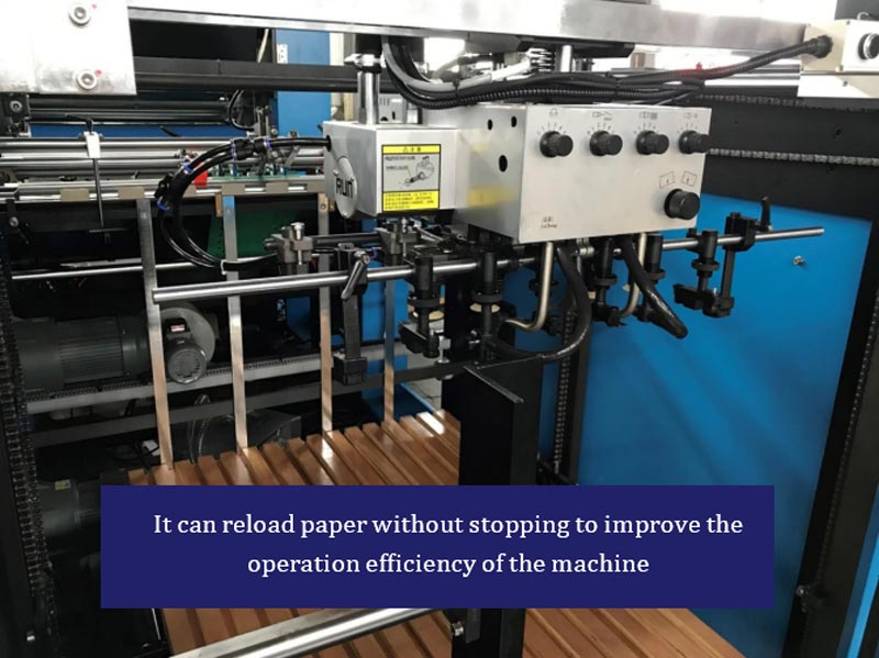 Quando o papel é duplo, ele inclui um mecanismo de rejeição. No caso de folhas duplas ou contínuas, o feedback do sinal fotoelétrico é detectado, e a correia receptora de papel acelera instantaneamente para cooperar com a ação de sopro, fazendo com que as folhas duplas voem para longe da mesa receptora de papel.
