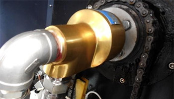 | O mecanismo de circulação interna do rolo de prensagem a quente do espelho com um diâmetro de 380 mm é coberto com filme. Esta é a parte principal do processo de revestimento de filme. Ele é feito por meio de dezenas de procedimentos de processamento. O grau de precisão é IT6. O erro de temperatura da superfície do rolo pode ser controlado dentro de 3 graus. A mudança de temperatura do óleo quente no rolo pode ser garantida pela máquina de temperatura do molde e controlada automaticamente. Devido à pequena mudança de temperatura, a qualidade de impressões de tinta grandes também é amplamente evitada. |  |