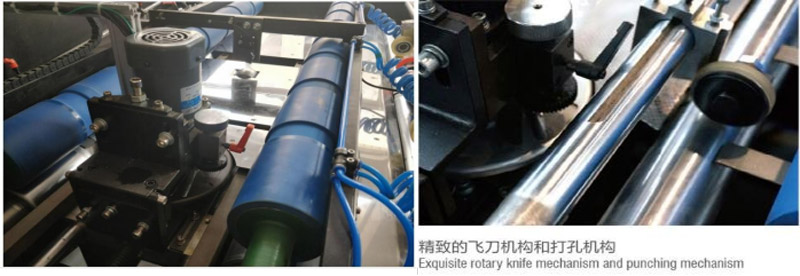 |  | O comprimento do papel da parte de desenho do papel é ajustado automaticamente, e a pressão da embreagem é controlada pneumaticamente. O novo mecanismo de corte pneumático pode controlar a borda do filme de forma eficaz, e a maior velocidade de corte pode chegar a 10.000 peças por hora. |