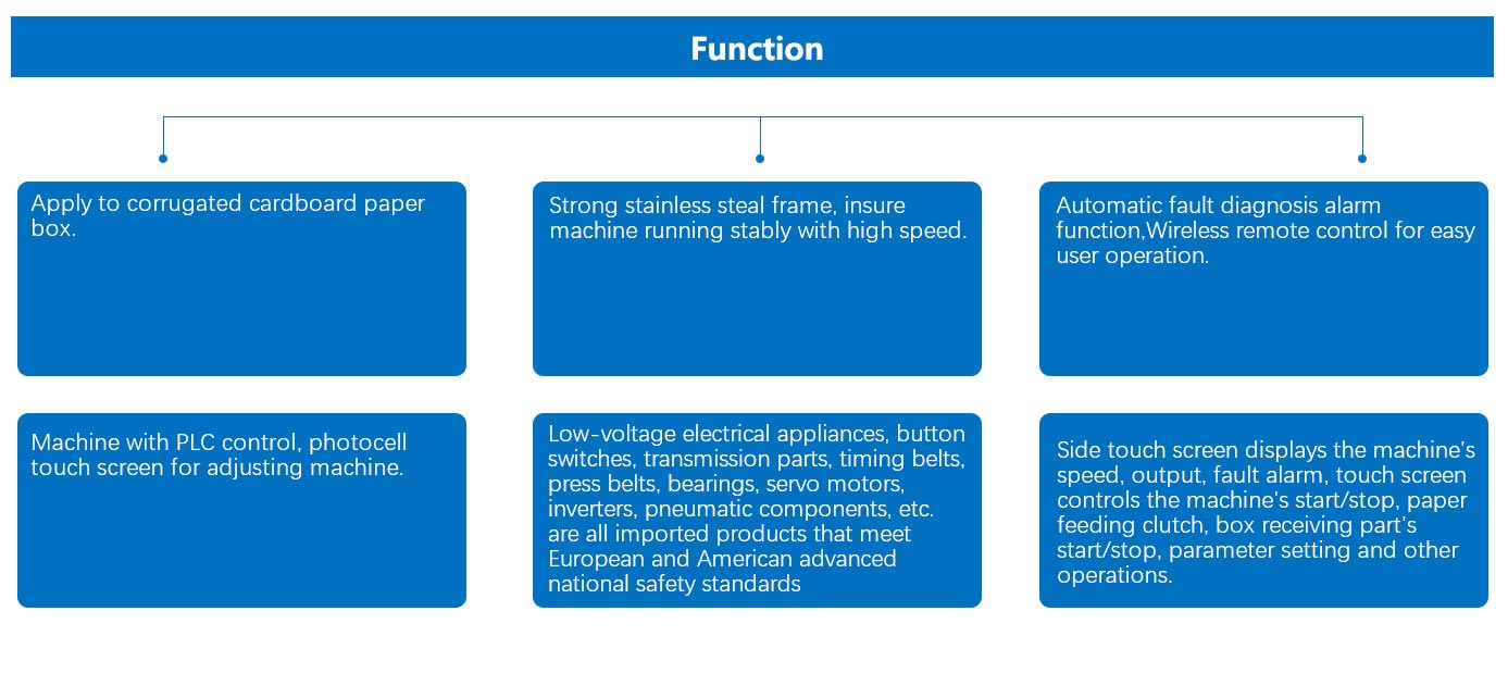 ·A máquina é especialmente projetada para todos os tipos de caixas de papelão e papelão ondulado de 4/6 cantos.